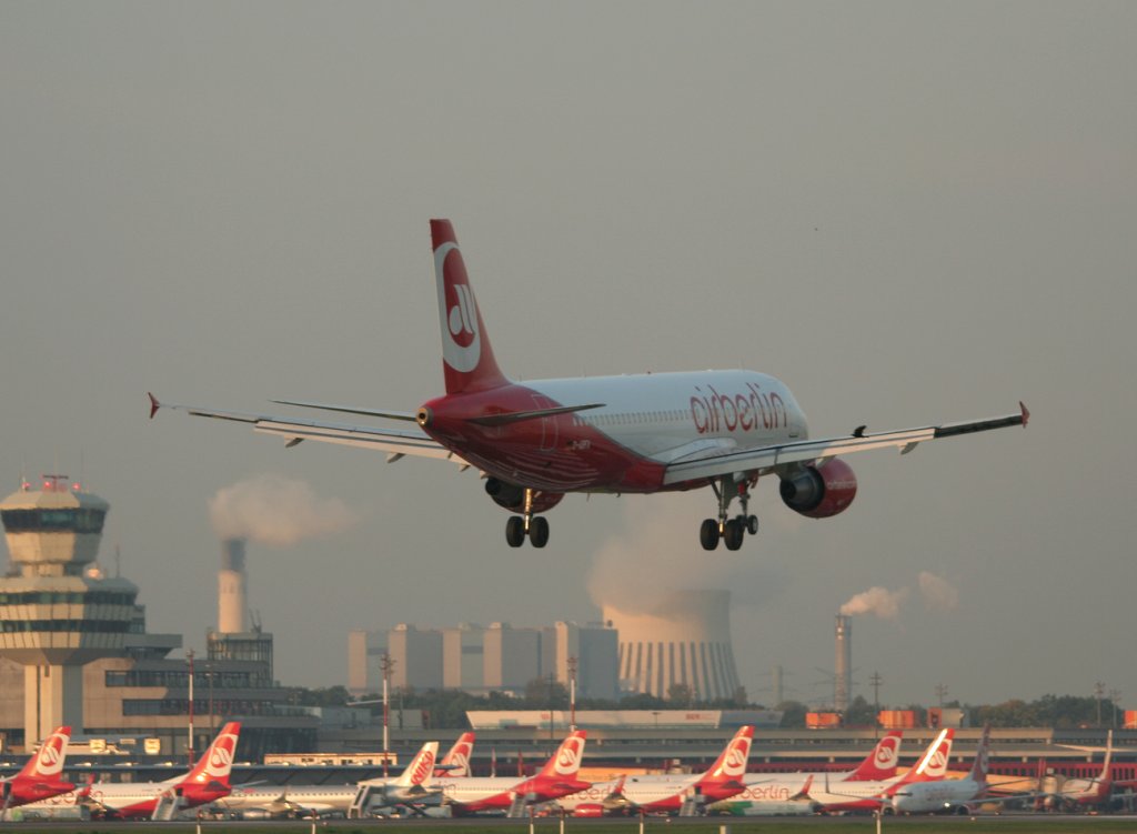 Air Berlin A 320-214 D-ABFA kurz vor der Landung in Berlin-Tegel am 04.10.2011