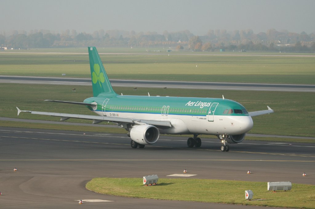 Aer Lingus A 320-214 EI-DEB auf dem Weg zum Start in Düsseldorf am 31.10.2011