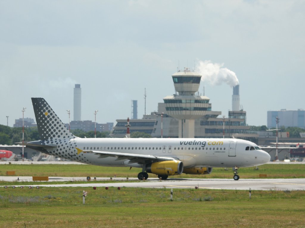 Vueling A 320-232 EC-LQN auf dem Weg zum Start in Berlin-Tegel am 25.06.2012