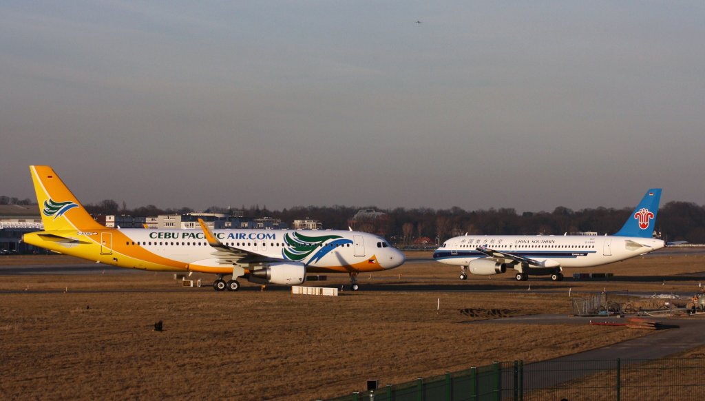 Cebu Pacific,D-AXAF,Reg.RP-C3273,(c/n5498),Airbus A320-214SL,05.03.2013,XFW-EDHI,Hamburg-Finkenwerder,Germany(rechts ChinaSouthern,D-AXAH,Reg.B-6977,(c/n5503),Airbus A320-232)