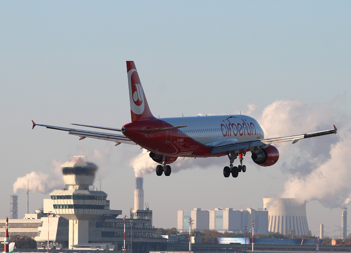 Air Berlin A 320-214 D-ABFG bei der Landung in Berlin-Tegel am 31.10.2013