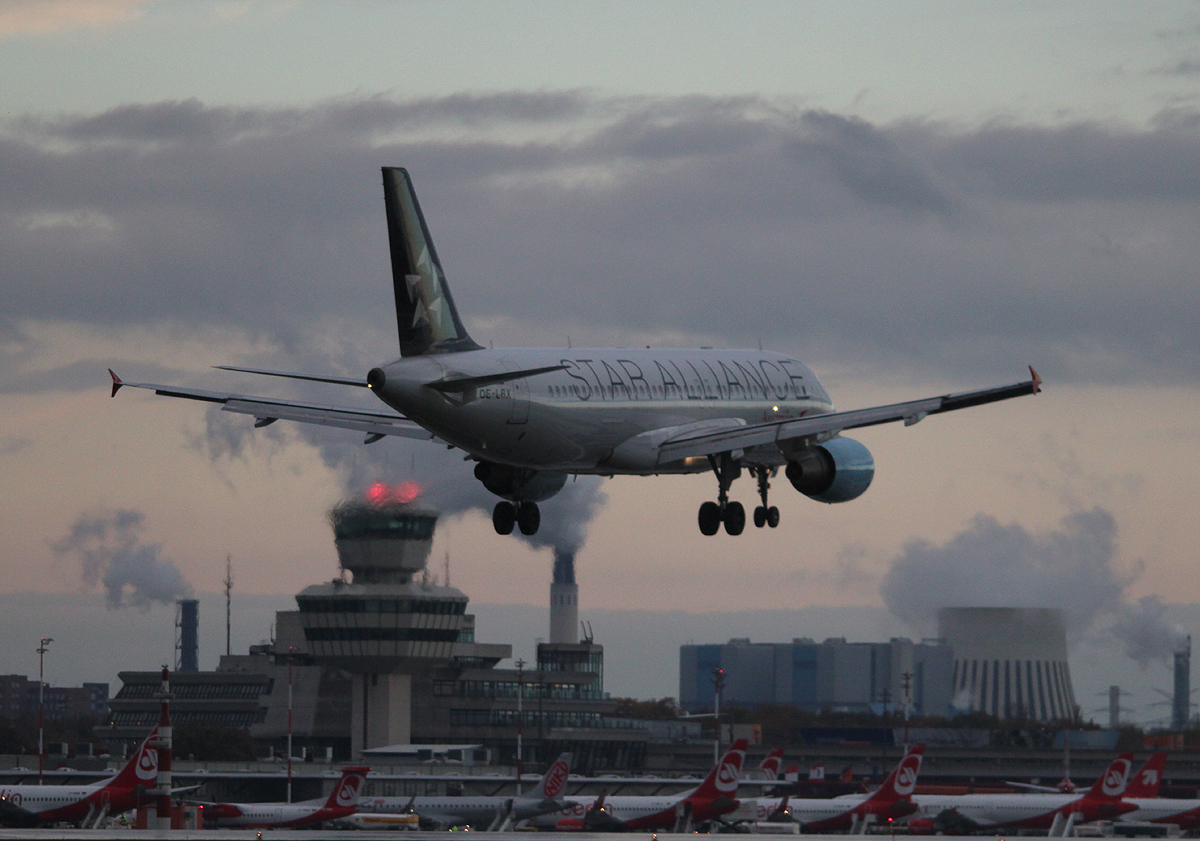 Austrian Airlines A 320-214 OE-LBX bei der Landung in Berlin-Tegel am 09.11.2013