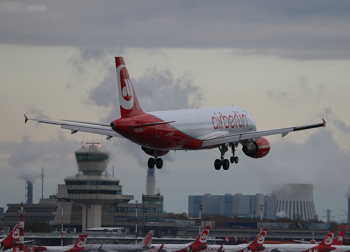 Air Berlin A 320-214 D-ABFA bei der Landung in Berlin-Tegel am 09.11.2013