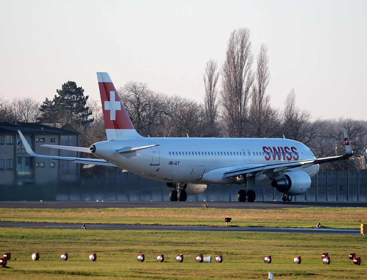 Swiss A 320-214 HB-JLT beim Start in Berlin-Tegel am 30.12.2013