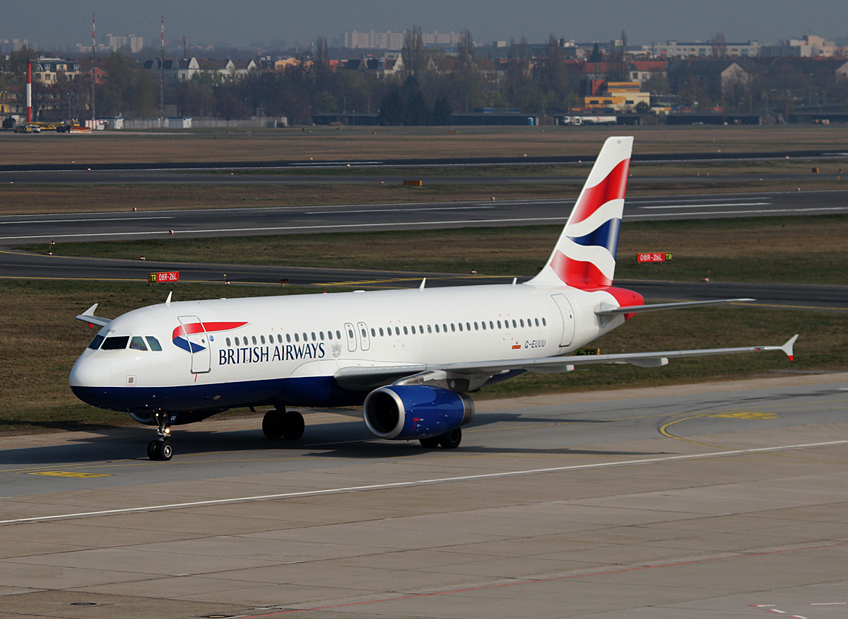 British Airways A 320-232 G-EUUU bei der Ankunft in Berlin-Tegel am 29.03.2014