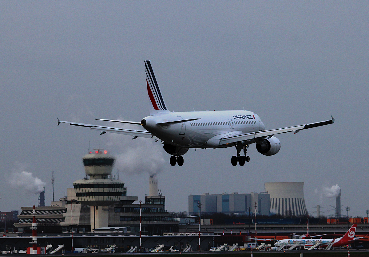 Air France A 320-214 F-GKXQ bei der Landung in Berlin-Tegel am 03.01.2015