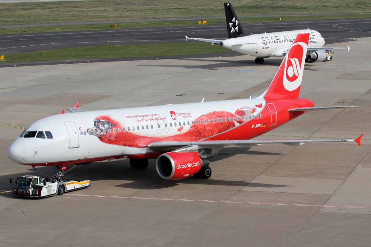 Air Berlin D-ABFO beim Push Back in Düsseldorf 14.4.2015