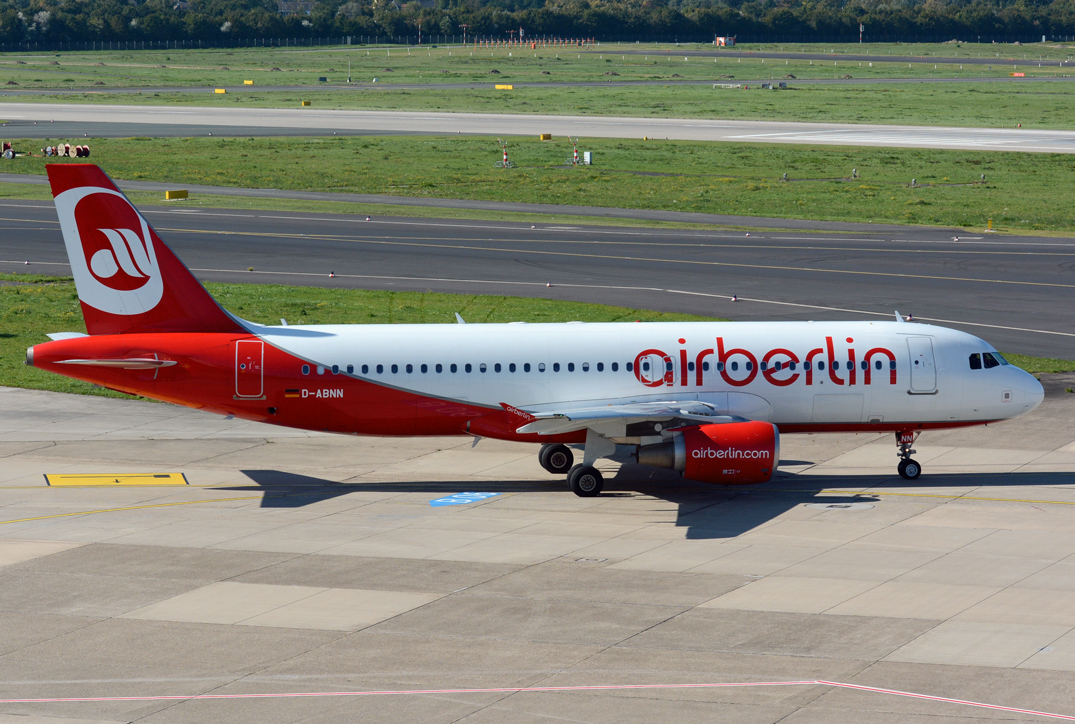 A 320-214 der Air Berlin, D-ABNN, taxy in DUS 01.10.2015