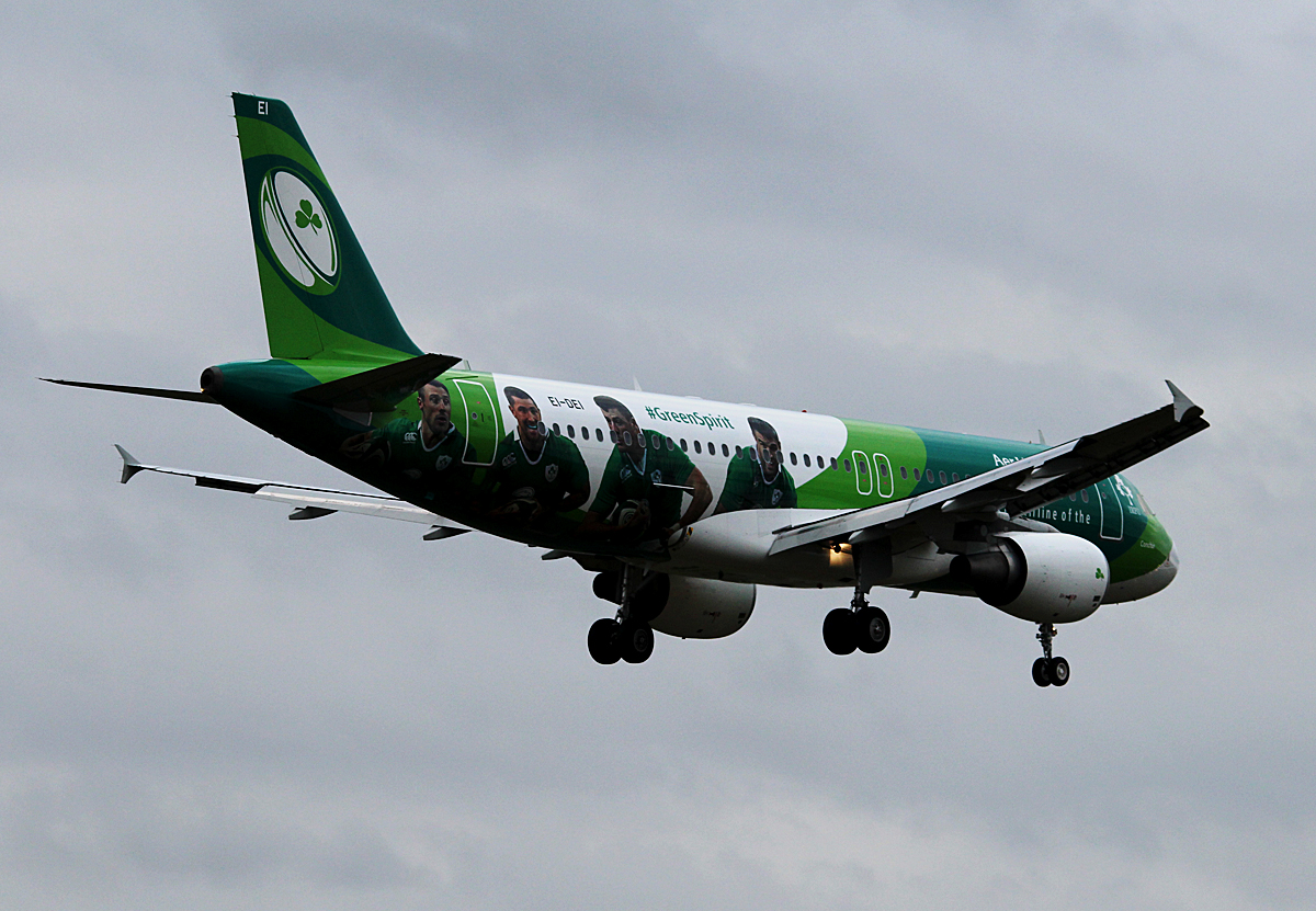 Aer Lingus A 320-214 EI-DEI bei der Landung in Berlin-Tegel am 14.11.2015