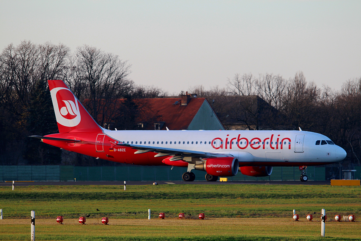 Air Berlin A 320-214 D-ABZE kurz vor dem Start in Berlin-Tegel am 06.12.2015