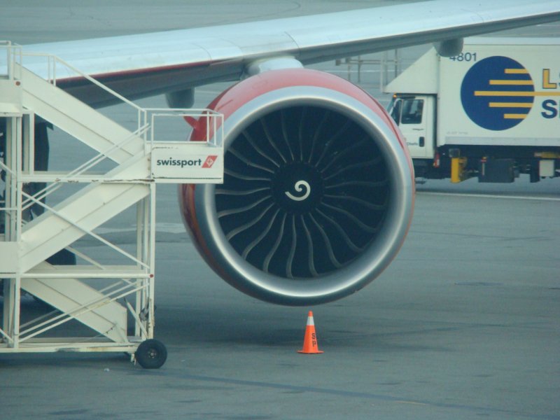 Das Triebwerk eines Airbus A330 von EgyptAir auf den JFK USA. Aufgenommen am 19.04.08