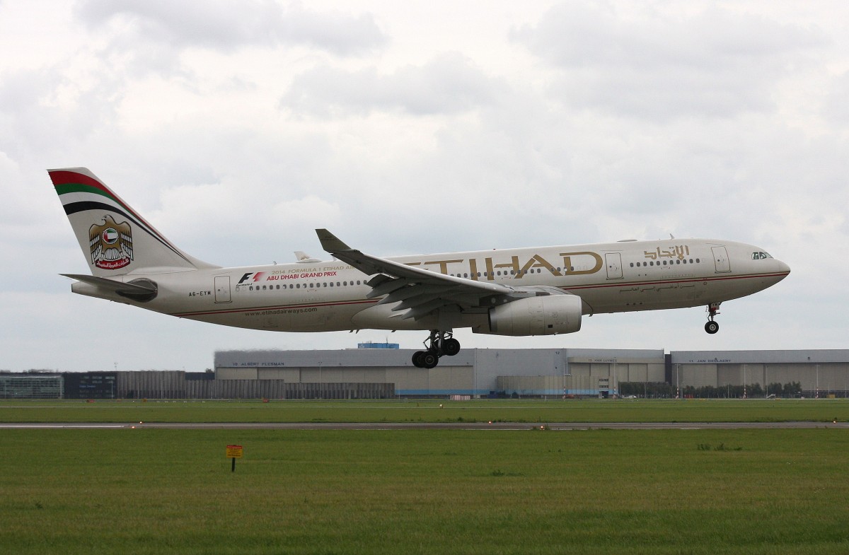 Etihad,A6-EYM,(c/n 824),Airbus A330-243,16.08.2014,AMS-EHAM,Amsterdam-Schiphol,Niederlande(Livery:2014 Formula 1,Abu Dhabi Grand Prix)