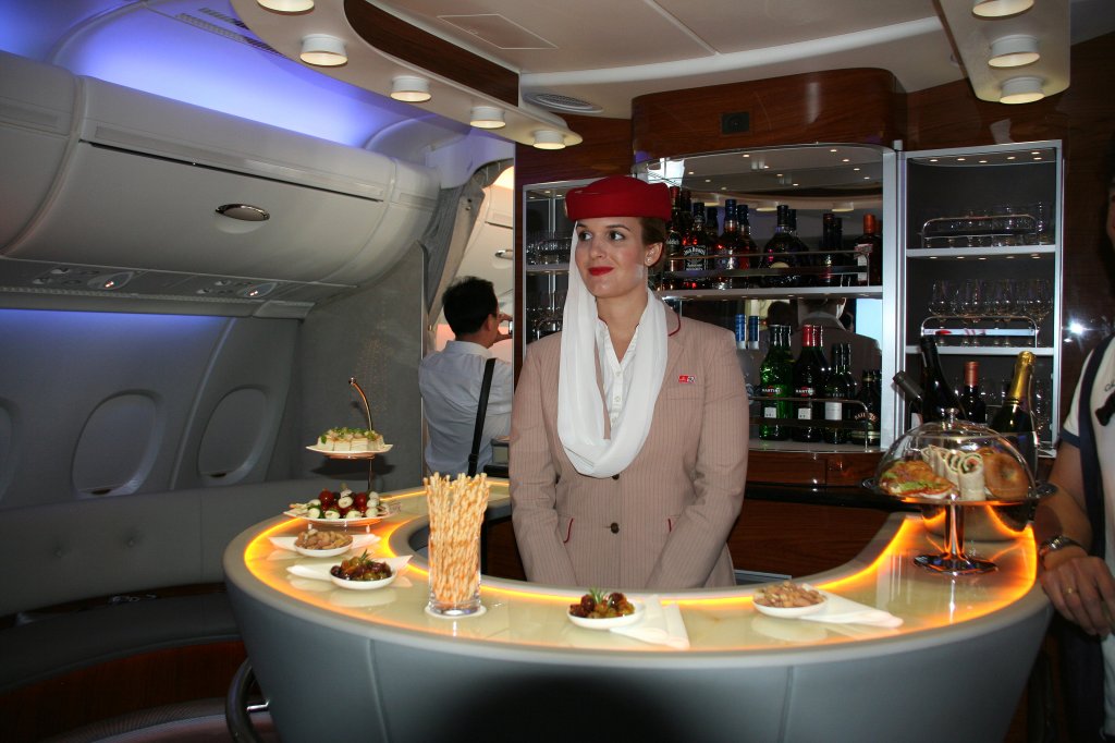 Die Bar im oberen Flugdeck des Emirates A 380-861 A6-EDJ am 09.06.2010 auf der ILA in Berlin-Schönefeld