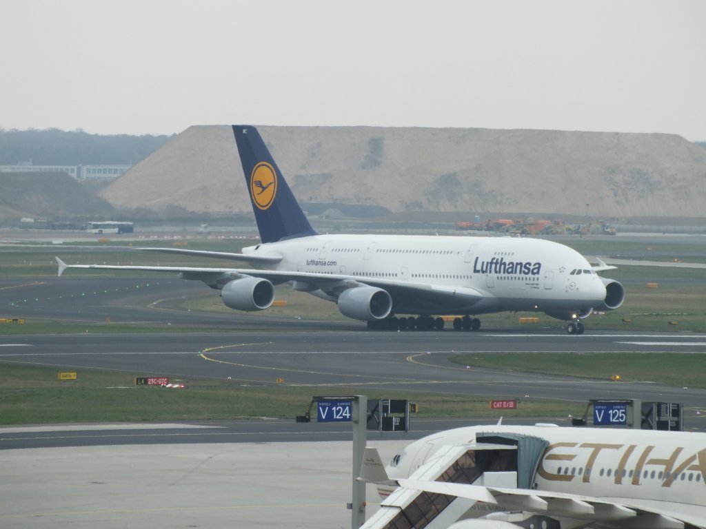 Airbus A380-800 "Peking" (D-AIMC) auf dem Weg zur Gate. (Frankfurt; 07.04.12)