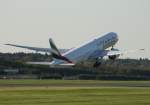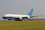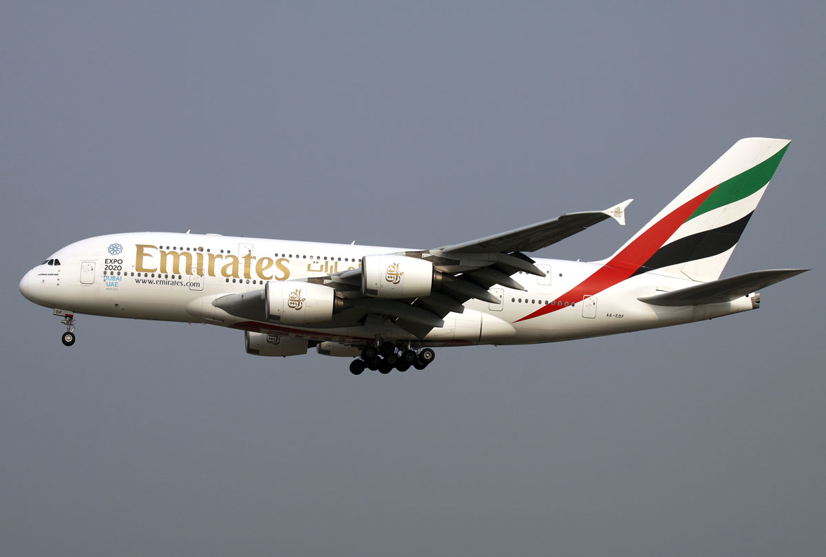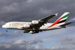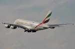 Emirates A-380 A6-EDF im Anflug auf 01 in PEK / ZBAA / Peking am 07.09.2014