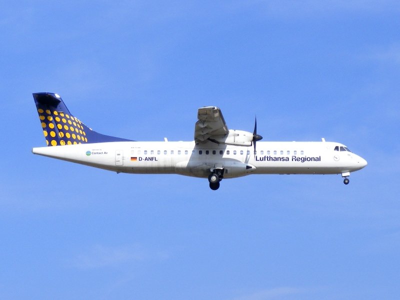 D-ANFL, ein ATR72-500 der Contact Air, am 4.3.2009 im Anflug auf Hannover.