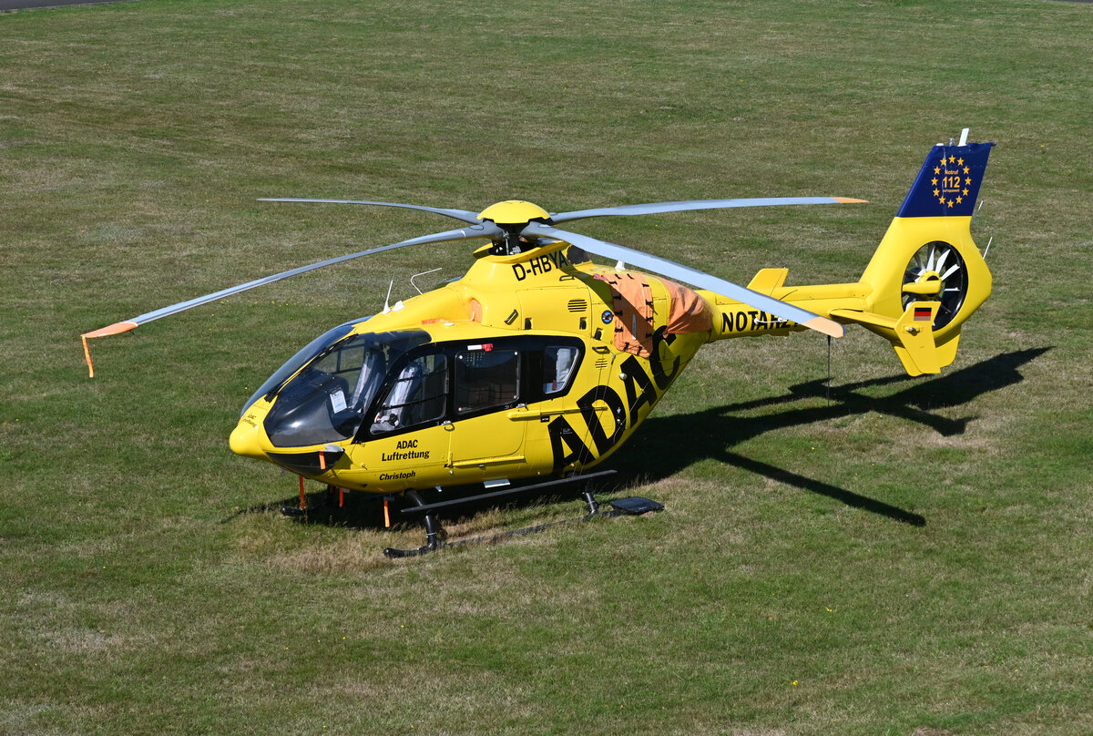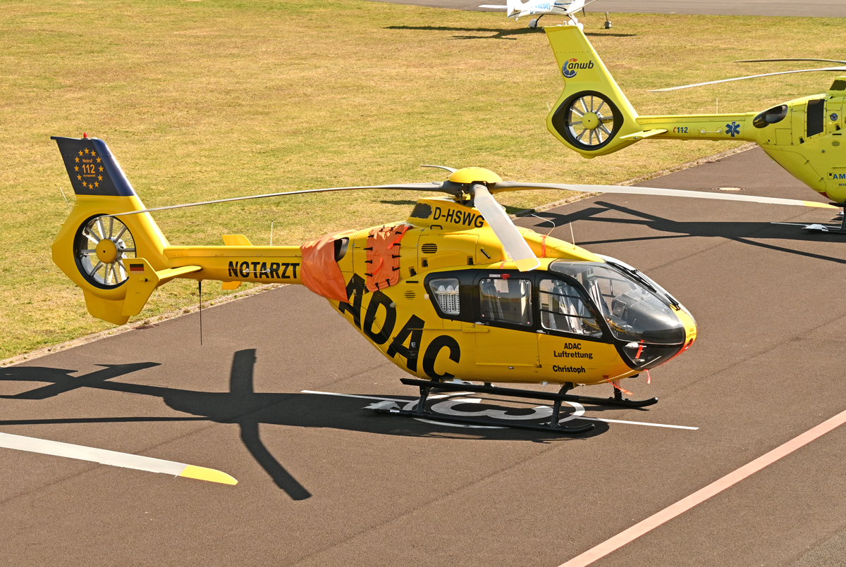 Davor die EC 135 P2 des ADAC D-HSWG.