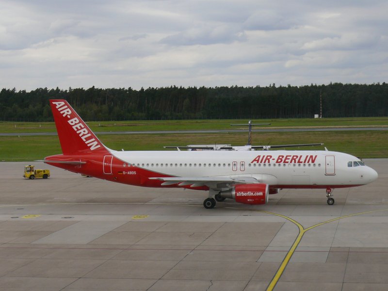Airbus A 320 der Air Berlin rollt richtung Startbahn auf dem Nürnberger Airport