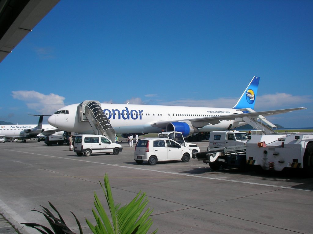 Flughafen Mahe / Seychellen - SEZ - Condor Boeing 767-300 - aufgenommen am 13.12.2008