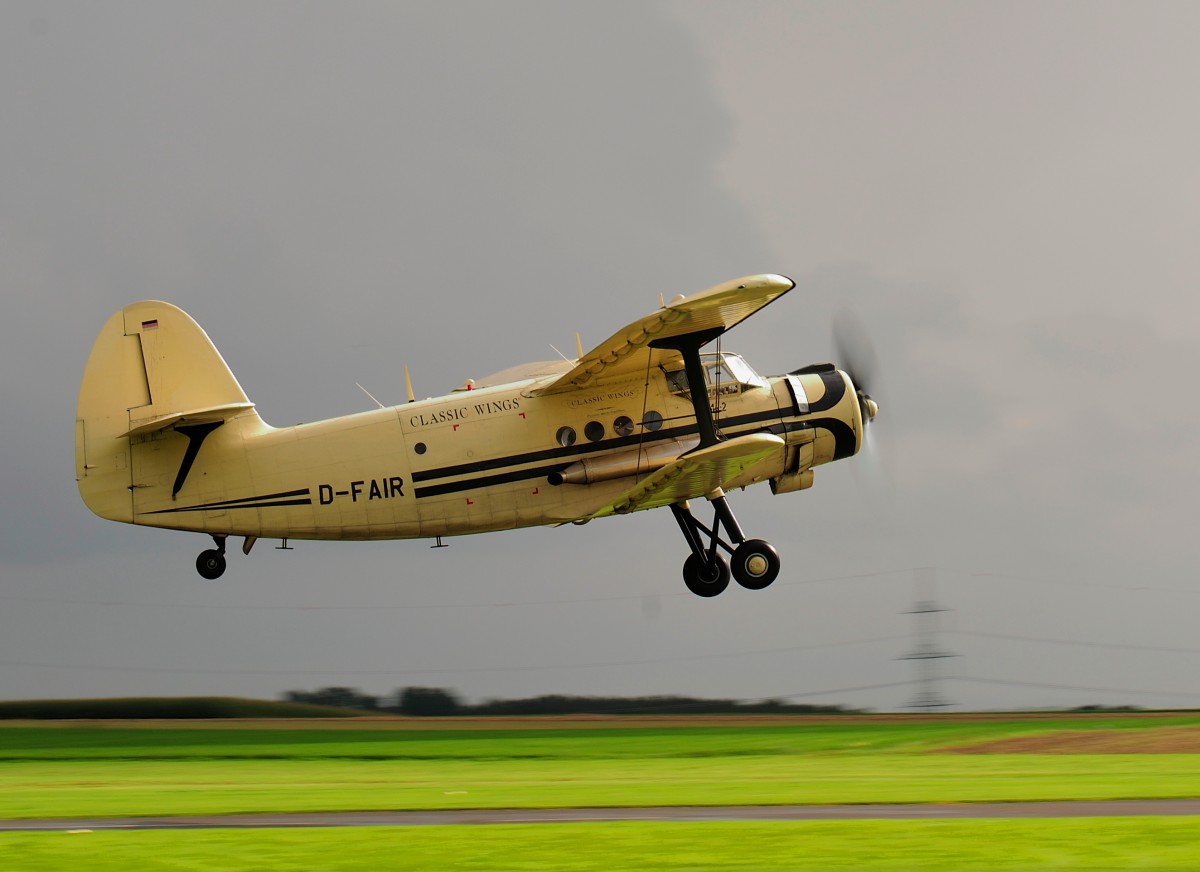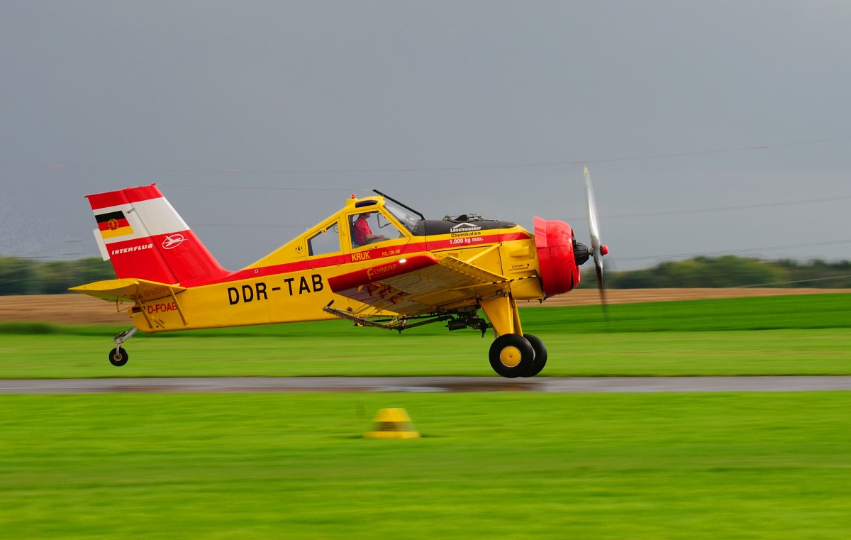 Dieter Gehling beim Start mit seiner PZL-106 Kruk D - FAOB ( Ex DDR - TAB), Agrarflugzeug des polnischen Herstellers PZL. Aufnahme in Merzbrück (EDKA) am 31.8.2014 bei einer Flugschau. Jürgen Senz