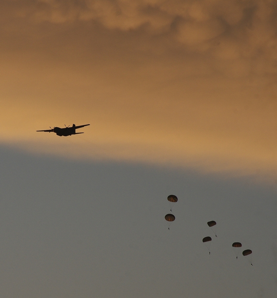 Französische, belgische und deutsche Fallschirmjäger übten zwischen dem 23. und 25 August über Wallerfangen - Düren.