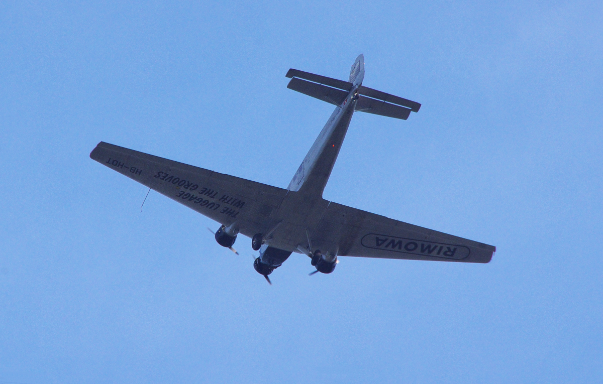 Am 07.09.2014 waren wir auf Wanderung im Saarkohlenwald, plötzlich hörte man ein lautes Brummen. Einige Zeit später dröhnte eine JU 52 3/M über unsere Köpfe. HB-HOT aus der Schweiz war über dem Saarland unterwegs. Erhard Pitzius