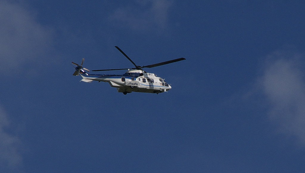 Wer wird da wohl als VIP drin sitzen. Flugbereitschaft 82+03 Eurocopter AS532 Cougar überfliegt das Örtchen Grobau im Vogtland. 21.05.2014 Erhard Pitzius