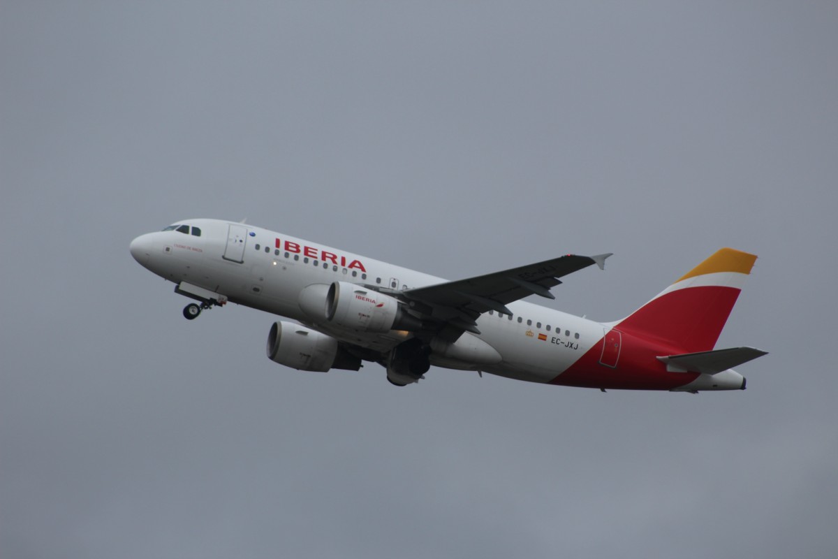 EC-JXJ Iberia Airbus A319 beim Start am 02.01.2016 in Düsseldorf