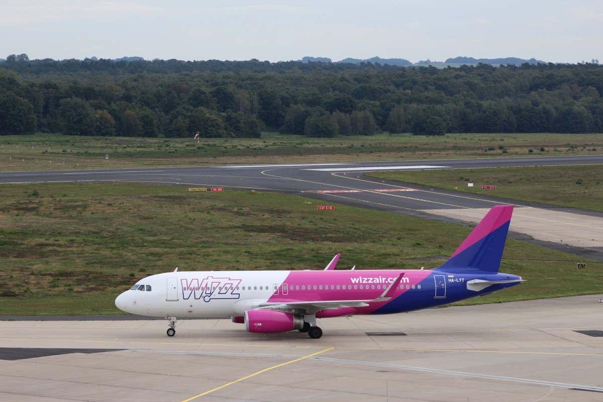 Ein A320 der Wizz Air am 4.10.2015 in Köln/Bonn in seinem neuen Farbschema.