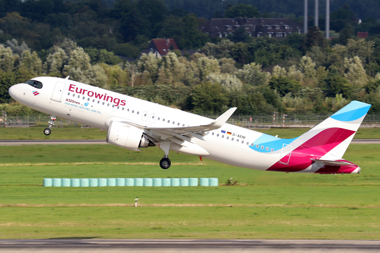 Eurowings Airbus A320-251N D-AENI beim Start in Düsseldorf 24.8.2024