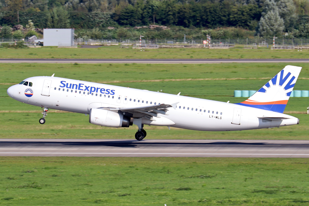 Sun Express Airbus A320-232 LY-MLG betrieben von Avion Express beim Start in Düsseldorf 24.8.2024
