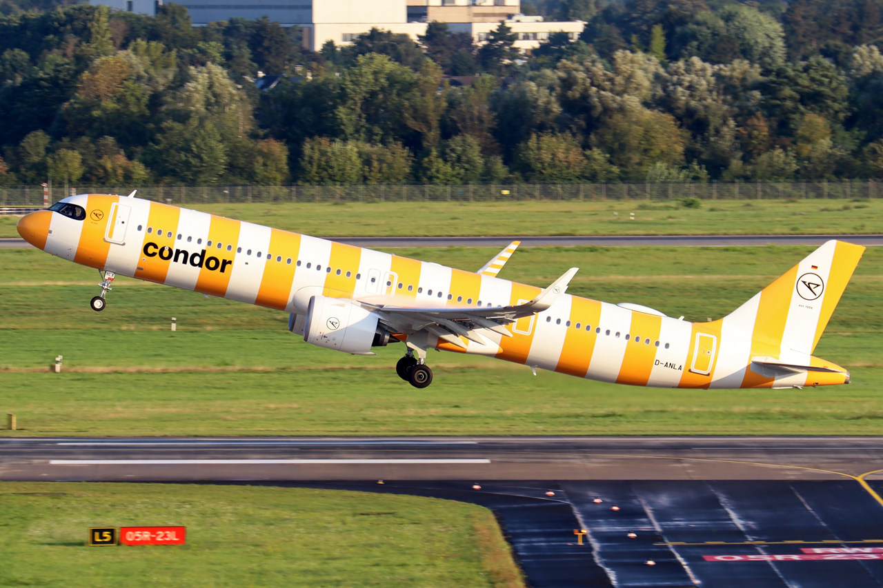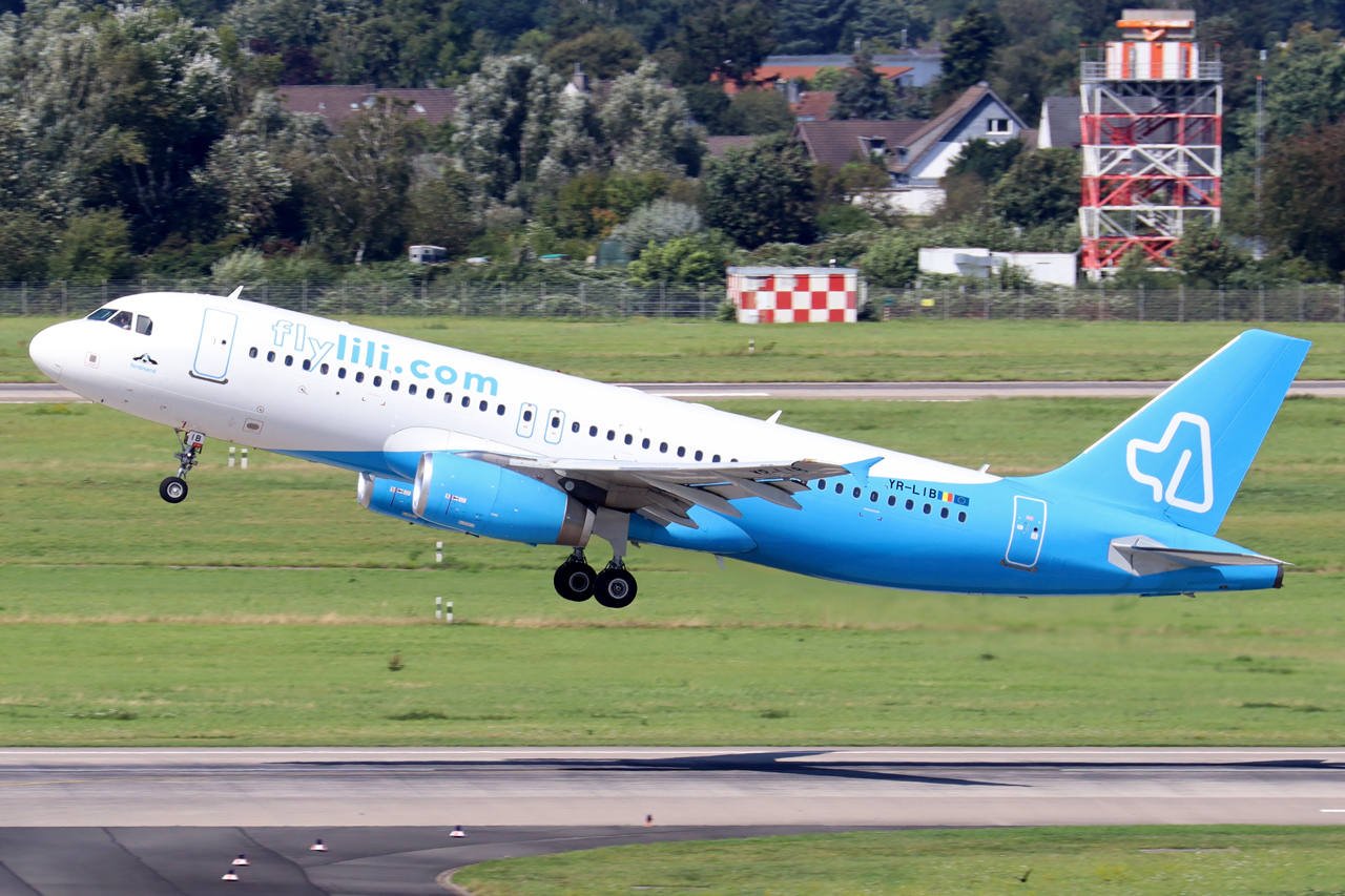 Fly Lili Airbus A320-232 YR-LIB beim Start in Düsseldorf 24.8.2024