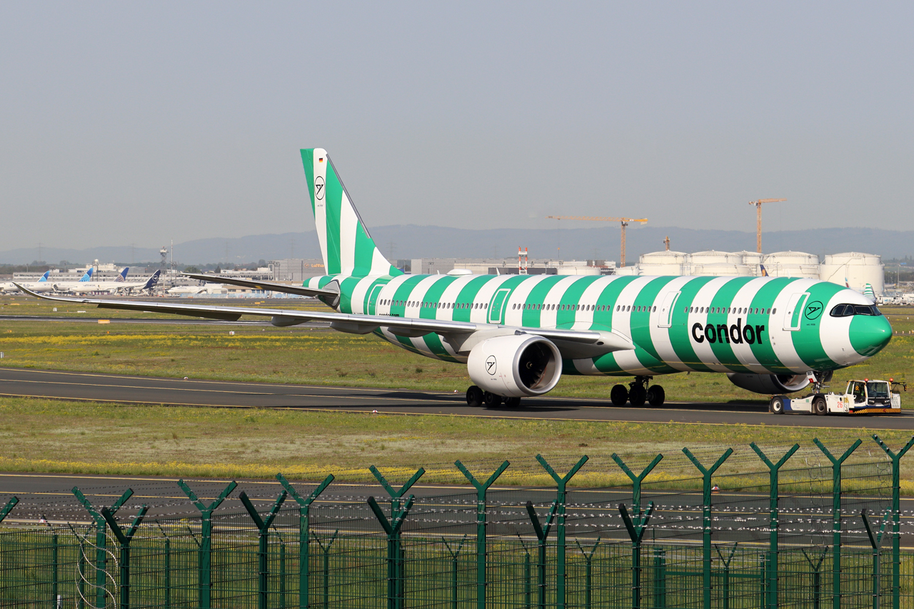 Condor Airbus A330-941 D-ANRD wird zum Terminal geschleppt in Frankfurt 30.4.2024