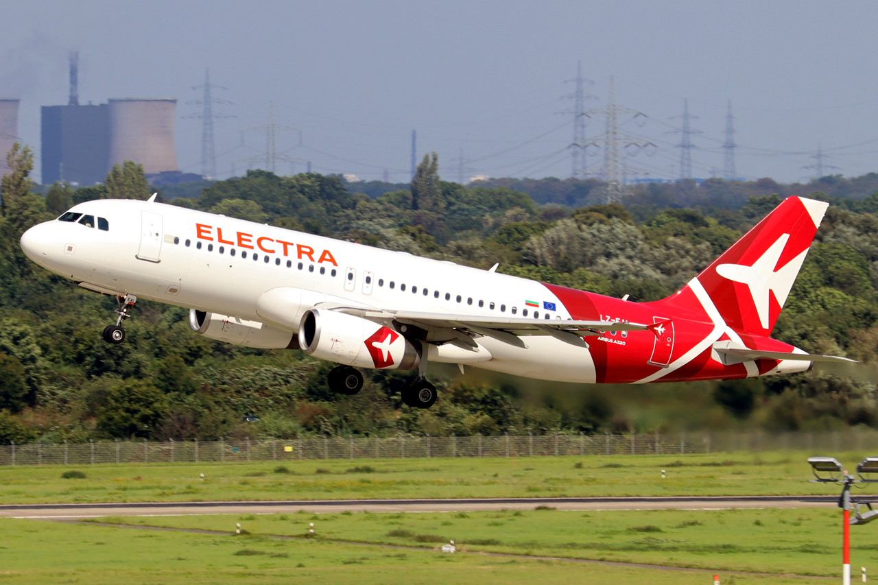 Electra Airways Airbus A320-232 LZ-EAI beim Start in Düsseldorf 24.8.2024