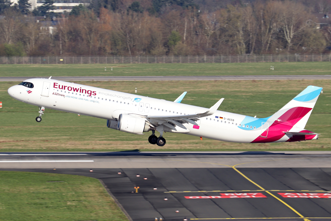 Eurowings Airbus A321-251NX D-AEEB beim Start in Düsseldorf 9.3.2024