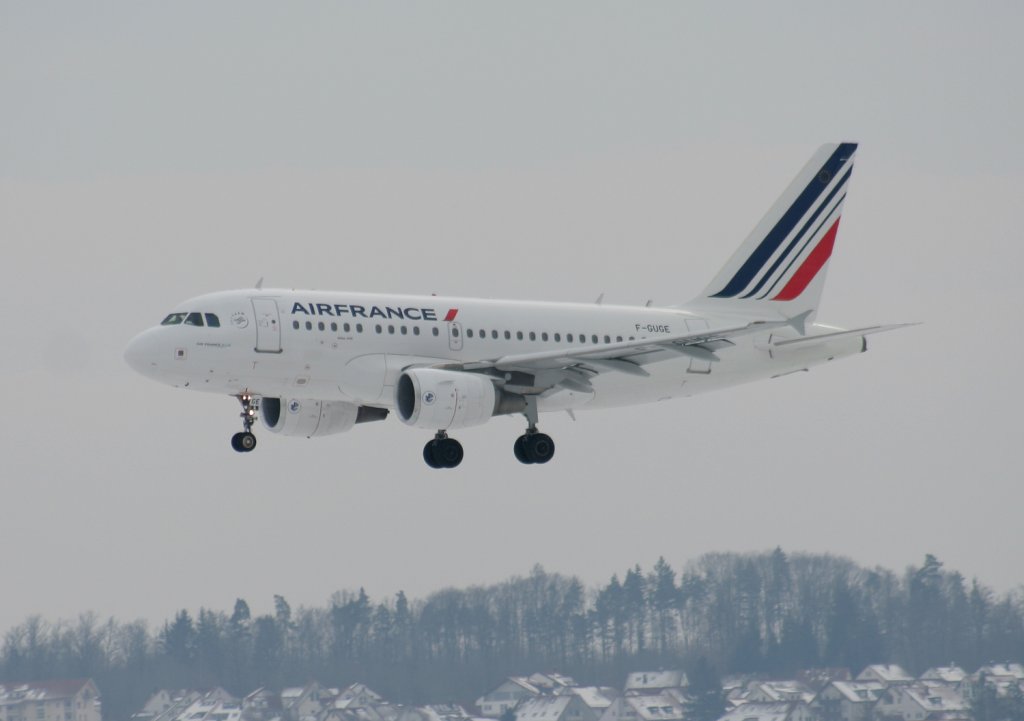 Air France A 318-111 F-GUGE kurz vor der Landung in Stuttagrt am 10.03.2010