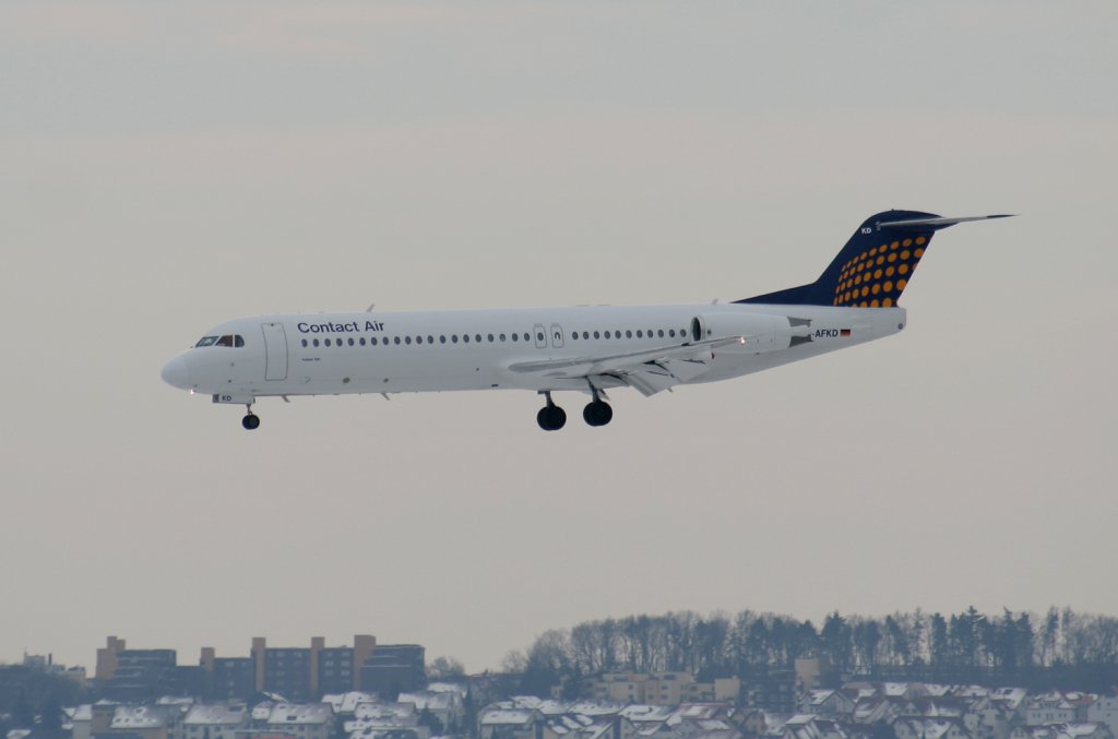 Contact Air Fokker 100 D-AFKD kurz vor dr Landung in Stuttgart am 10.03.2010