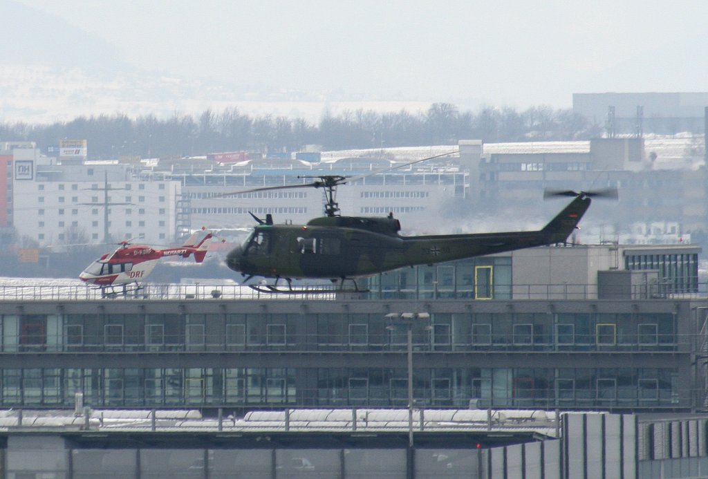 Deutsche Rettungsflugwacht (German Air Rescue) Eurocopter BK 117A4 D-HDRF und Germany Army Bell UH-1D 23+30 am 10.03.2010 auf dem Flughafen Stuttgart