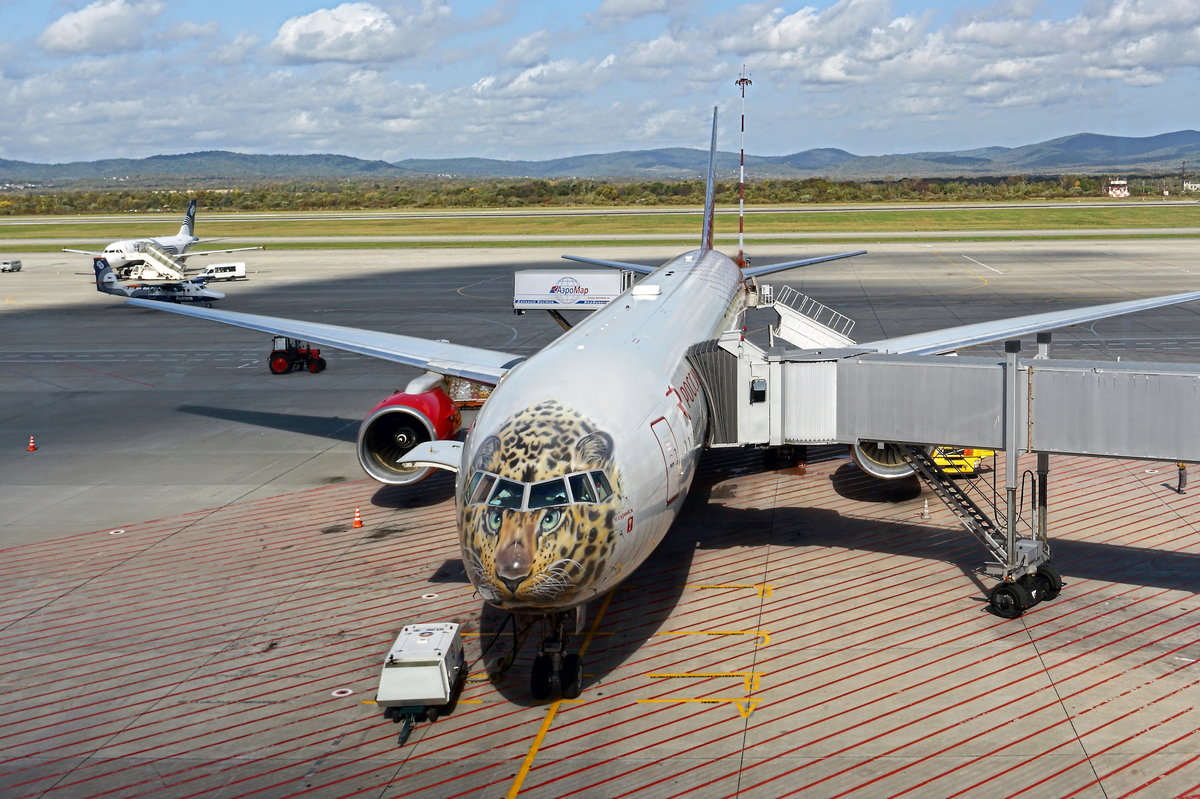Boeing 777-300 EI-UNP der ROSSIYA AIRLINES steht am 22. September 2017 zum Flug nach Moskau  auf den Vladivostok International Airport (VVO-UHWW) bereit.