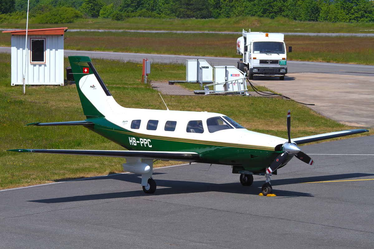 Piper PA-46-350P Malibu Mirage (HB-PPC) auf dem Flughafen Heringsdorf. - 28.05.2012