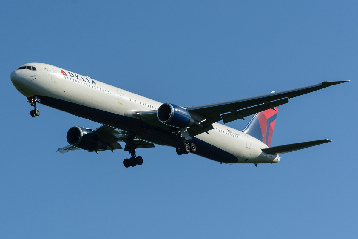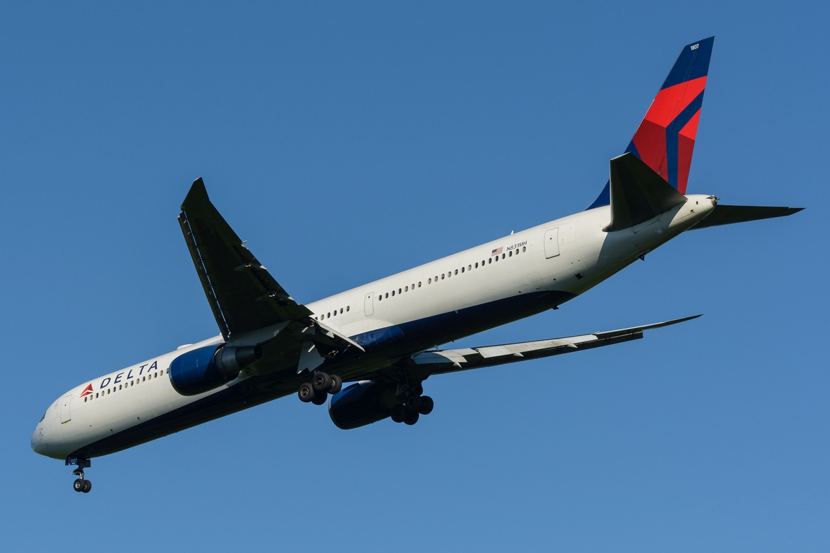Delta Air Lines Boeing 767-400 N381MH am Morgen des 27.05.2017 im Anflug auf Düsseldorf.