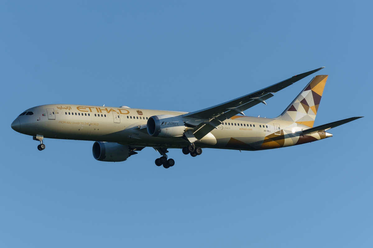Etihad Airways Boeing 787-9 Dreamliner A6-BLL am Morgen des 27.05.2017 im Anflug auf Düsseldorf.