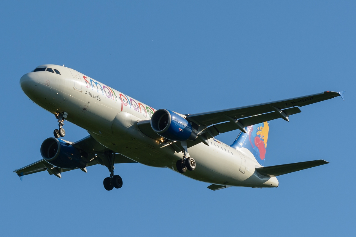 Small Planet Airlines Airbus A320-200 LY-SPF am Morgen des 27.05.2017 im Anflug auf Düsseldorf.