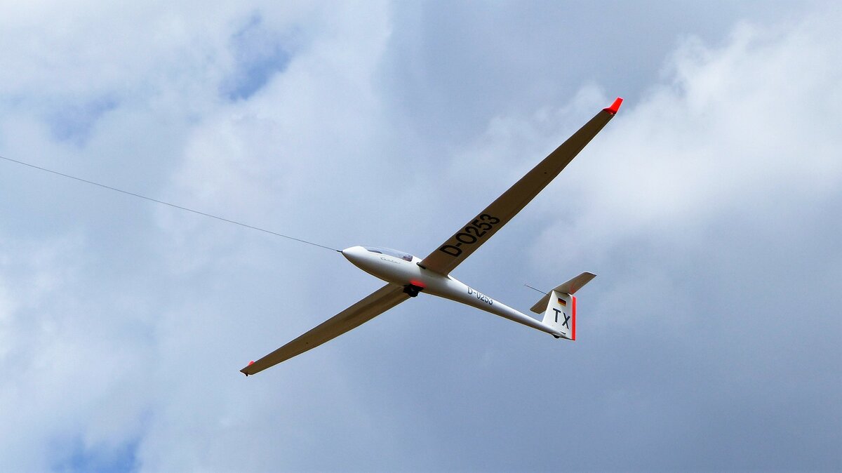 Schempp Hirth Ventus, D-0253 beim F-Schleppstart in Coburg Steinrücken (EDQY) am 16.7.2022