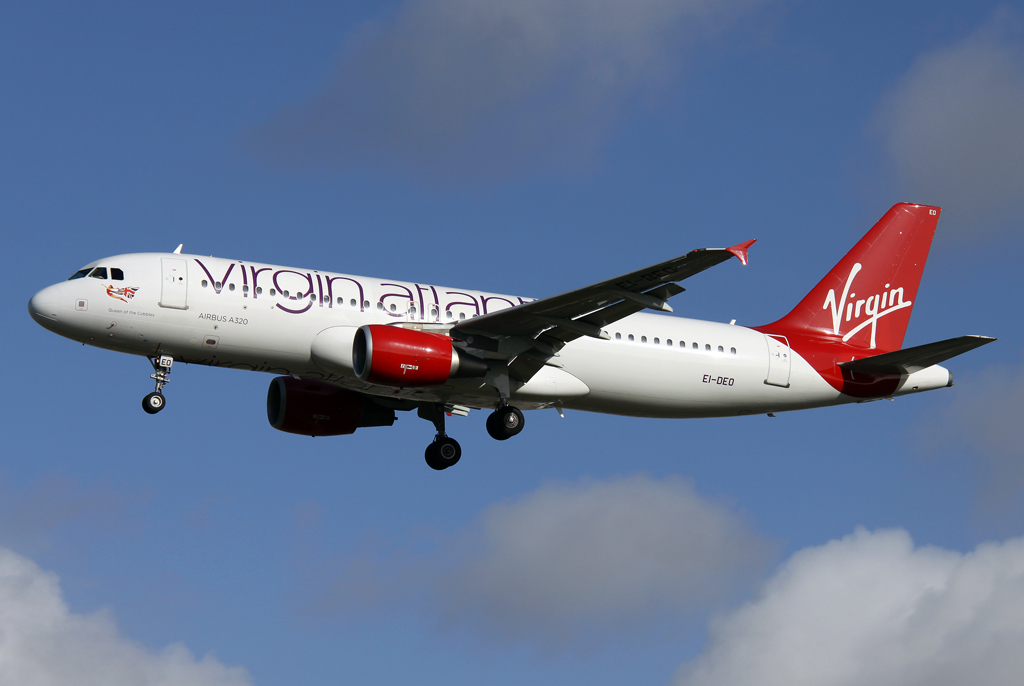 Virgin Atlantic A-320 EI-DEO im Anflug auf 27L in LHR / EGLL / London Heathrow am 22.02.2014