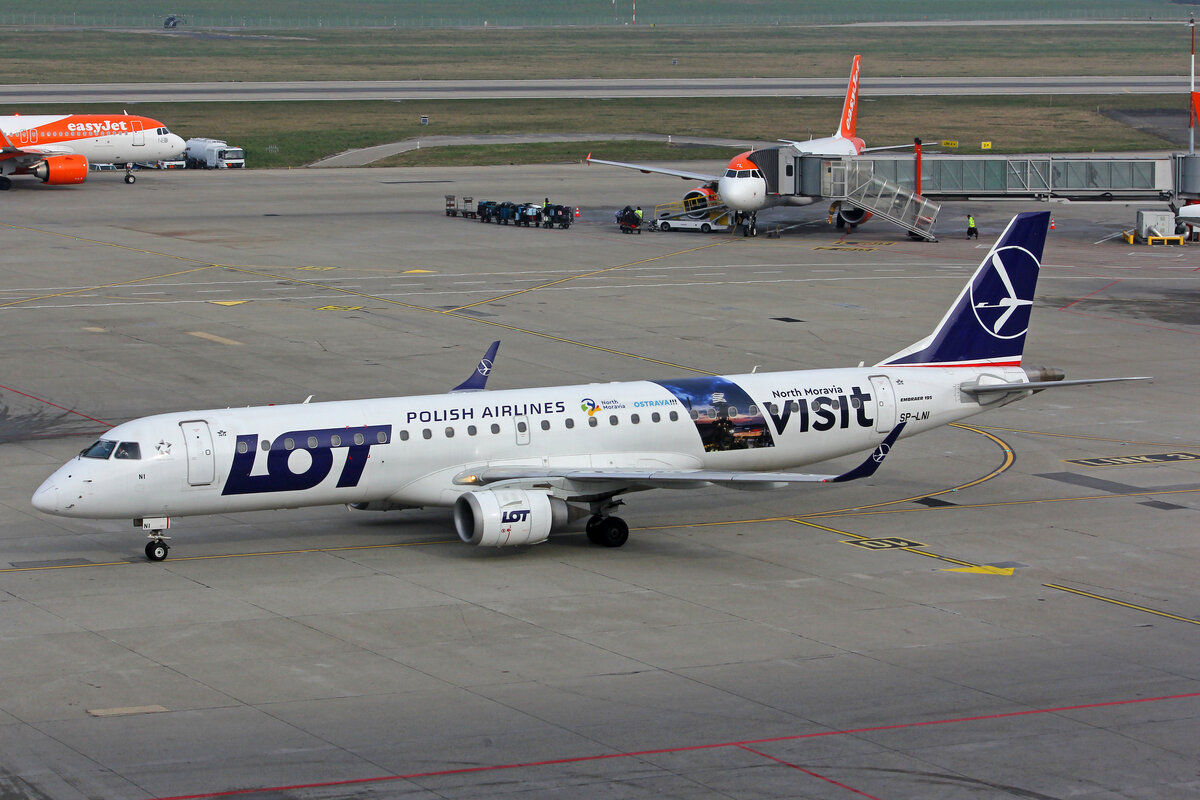 LOT Polish Airlines, SP-LNI, Embraer ERJ-195LR, msn: 19000240, "Visit North Moravia", 09.März 2024, GVA Genève, Switzerland.