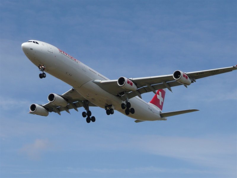Swiss International Airlines A 330 HB-JNB am 25. Januar 2018 beim Touchdown auf Piste 14 des Flughafens Zürich.