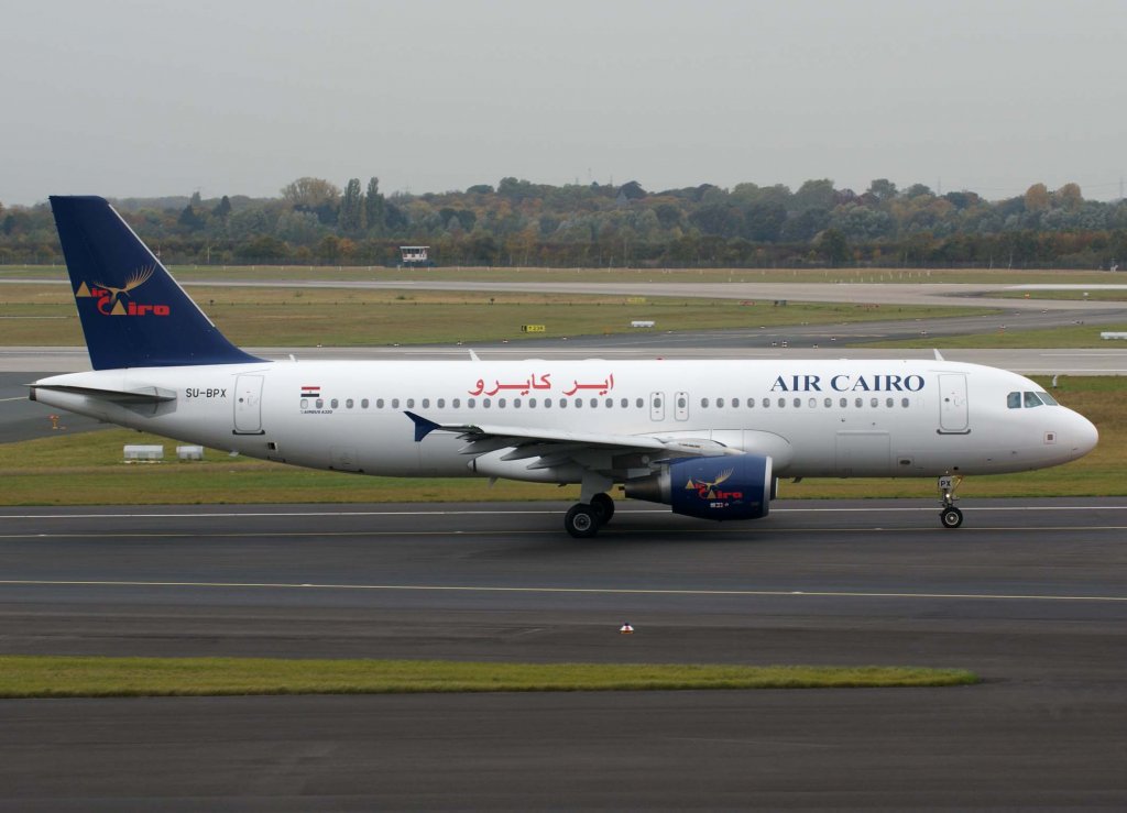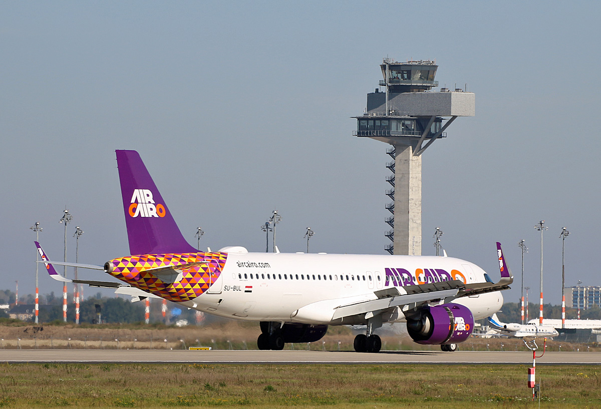 Air Cairo Airbus A320-214 SU-BPU rollt zum Start in Köln 3.11.2024