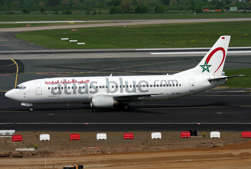 Atlas Blue B737-400 CN-RNC rollt zur 05R in DUS / EDDL / Düsseldorf am 03.05.2008