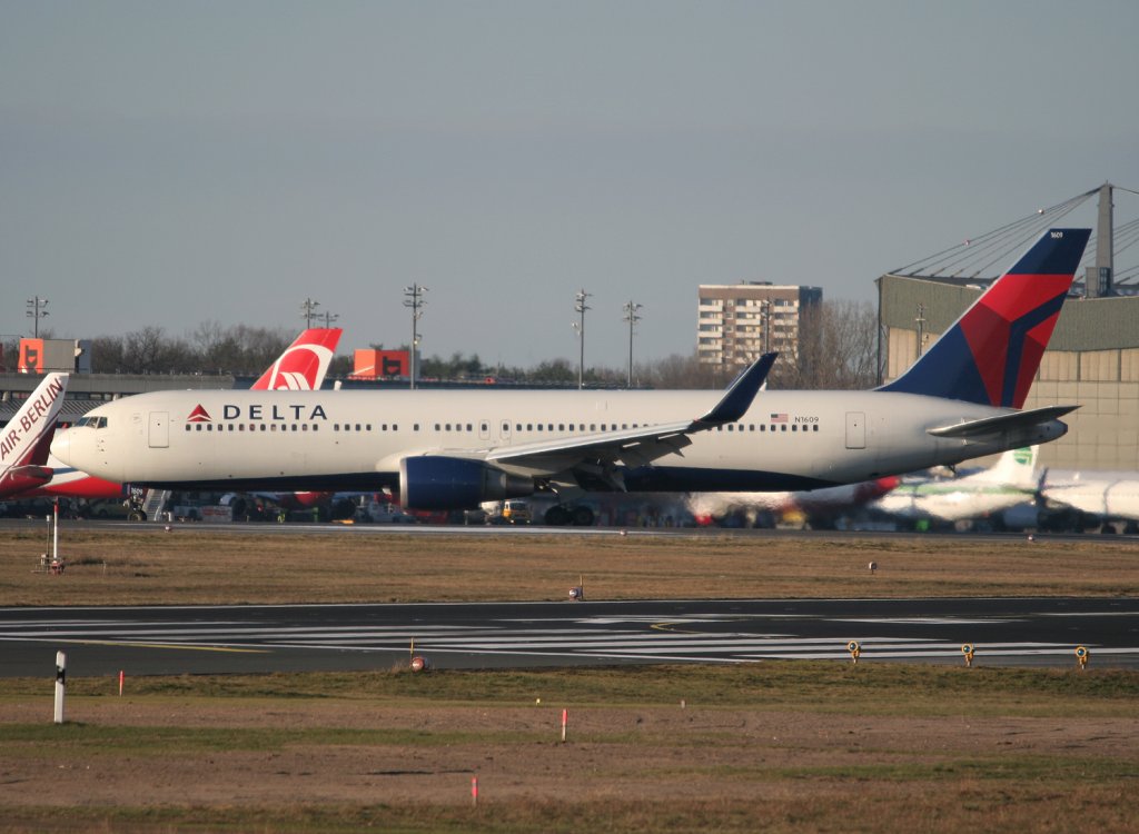 Delta Airlines B 767-332(ER) N1609 bei der Ankunft in Berlin-Tegel am 12.02.2011